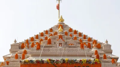 राम मंदिर के शिखर पर फहराया गया झंडा